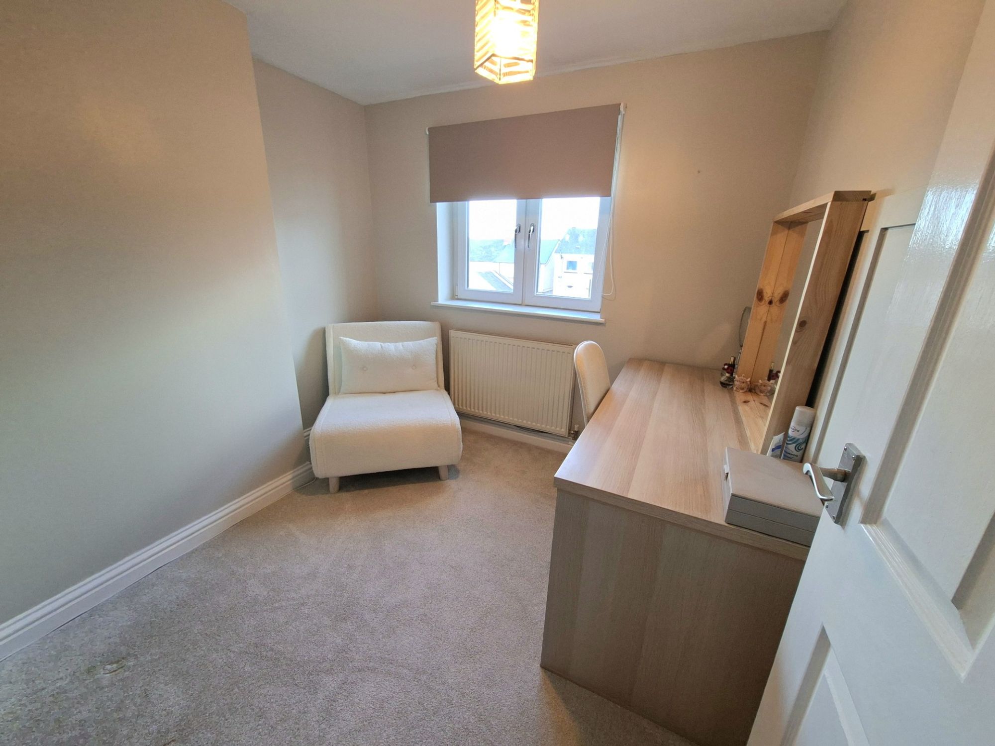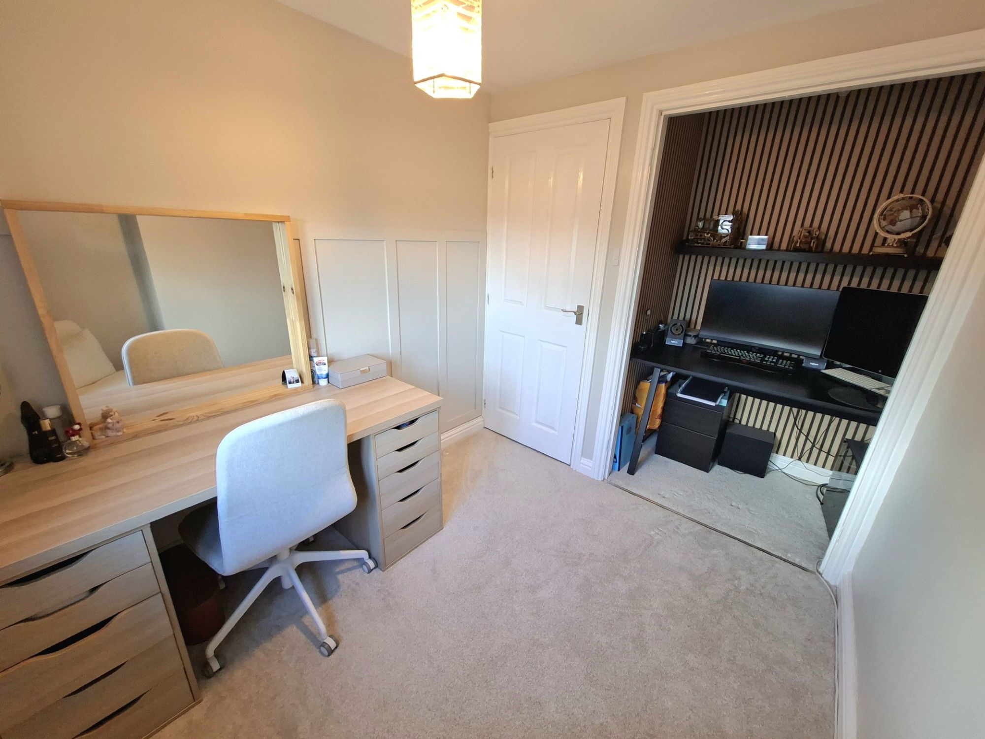 BEDROOM TWOThe second double bedroom is located to the rear of the first floor and has a built-in walk-in closet which is currently cleverly being used as a an office space so as not to impede on the room space. The room overlooks the rear garden.