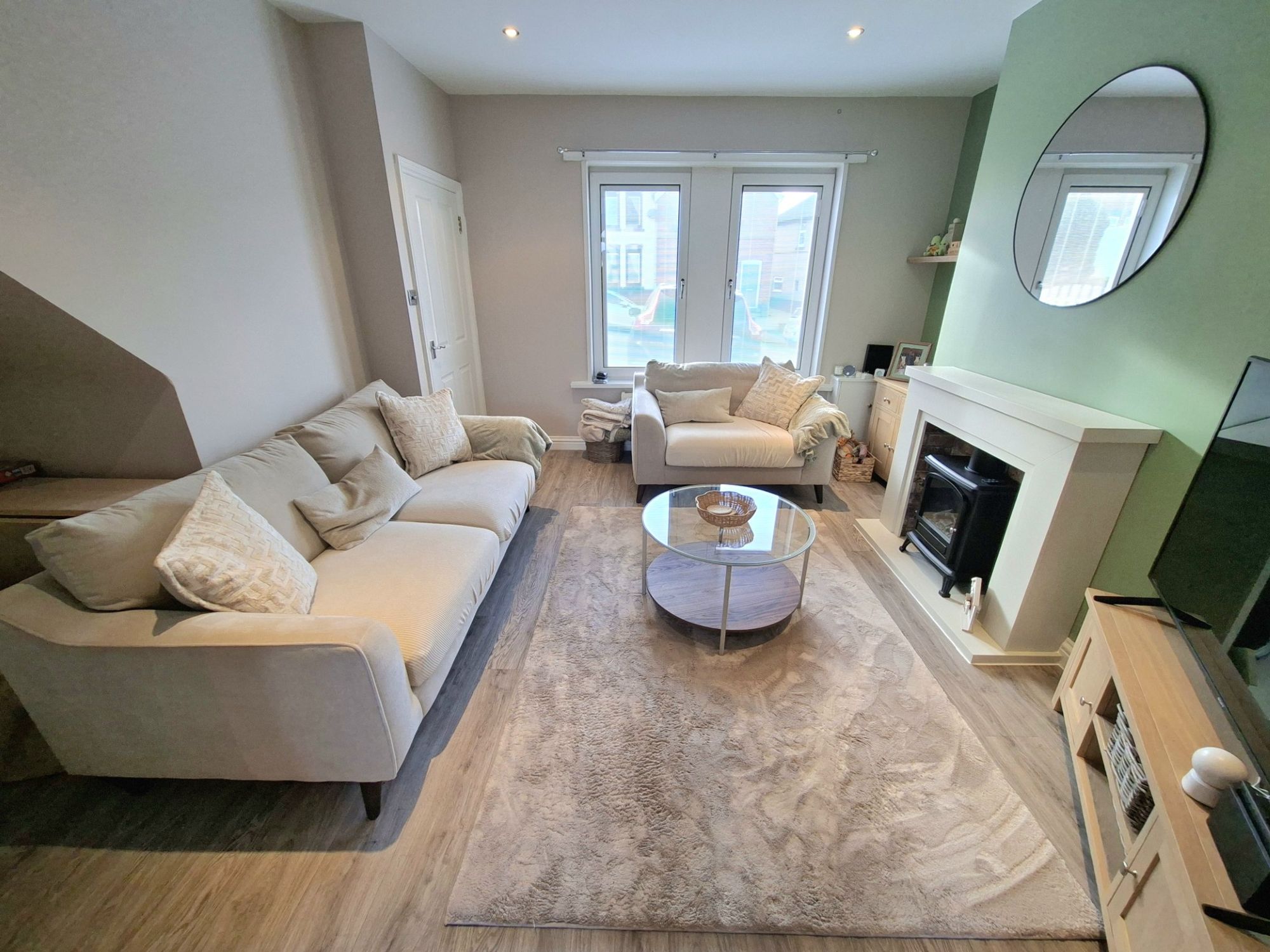 This stunning living room is presented in an excellent condition with high quality wood effect flooring and great natural light.