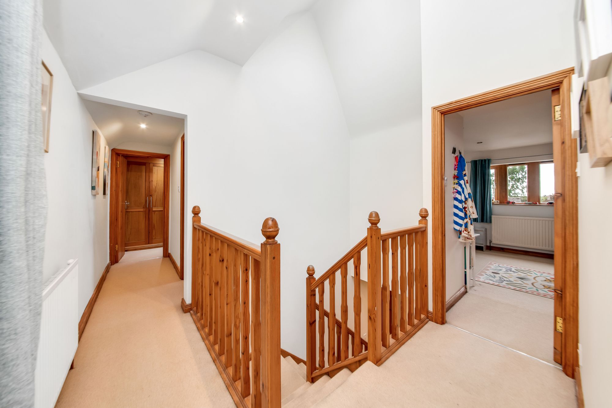 FIRST FLOOR LANDINGThis, with large Velux-style window to the high roofline and window giving a pleasant outlook to the rear of the property. The first-floor landing has inset spot lighting to the ceiling and a good-sized storage cupboard which is also home to the property’s gas-fired central heating boiler.