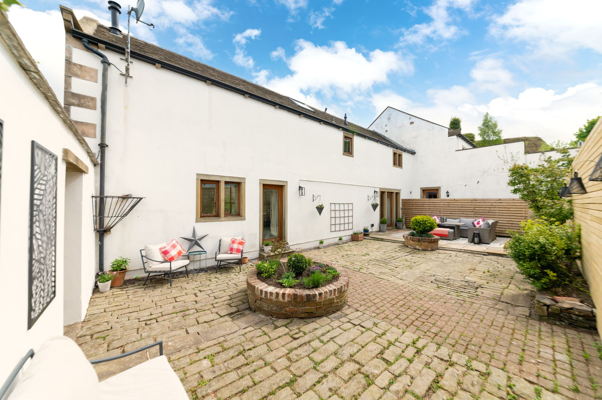 As the photograph and floor layout plan indicate, this is a particularly large room. It has two fabulous, arched windows providing a huge amount of natural light and delightful outlook over the property’s gardens and beyond. There is inset spot lighting to the ceiling, a glazed door out to the enclosed, rear gardens, a further pair of windows giving a pleasant outlook over the rear gardens, high ceiling height and fabulous, broad fireplace with raised, stone-flagged hearth, antique brick backcloth and multi-fuel burning cast iron stove with glazed door. The fireplace also has integrated spot lighting.