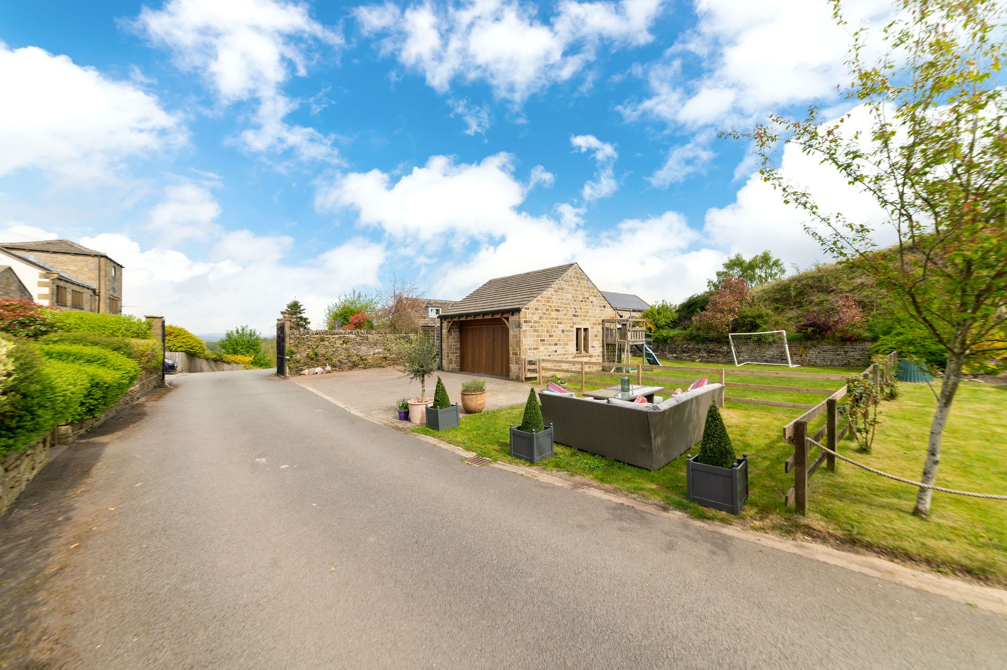 A lovely double bedroom with an astonishing view to two sides out over the property’s garden areas to the front and long-distance views towards Thurstonland church spire and down towards Honley Moor, courtesy of two further windows. The room benefits from built-in wardrobes, inset spot lighting to the ceiling, provision for a wall-mounted TV and a doorway leads to the en suite.