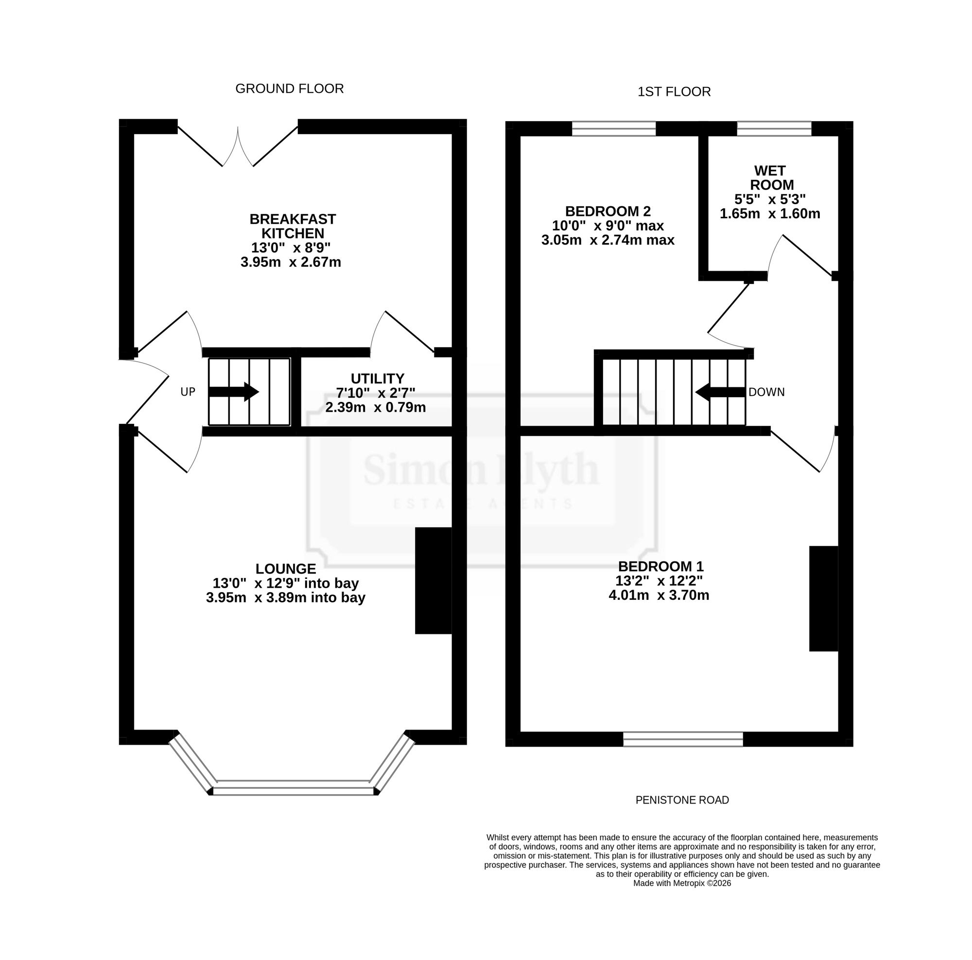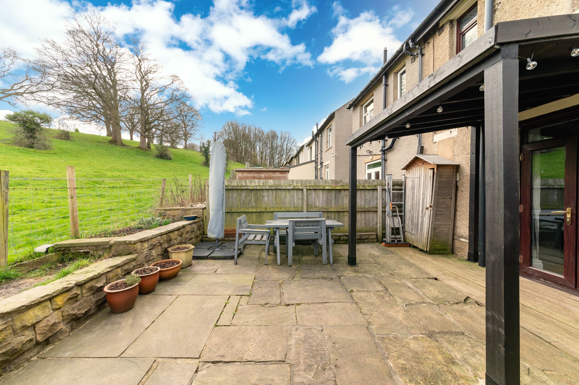 The property accommodation briefly comprises entrance from the side elevation, leading into a lounge with fabulous bay window and the kitchen to the rear with useful understairs pantry. To the first floor there are two bedrooms and the bathroom, with bedrooms taking advantage of fantastic views across the valley to the front and of neighbouring fields to the rear. Externally, there is a lawn garden with flagged patio to the front and a low maintenance garden with decking area with canopy above, and a flagged patio overlooking neighbouring fields.