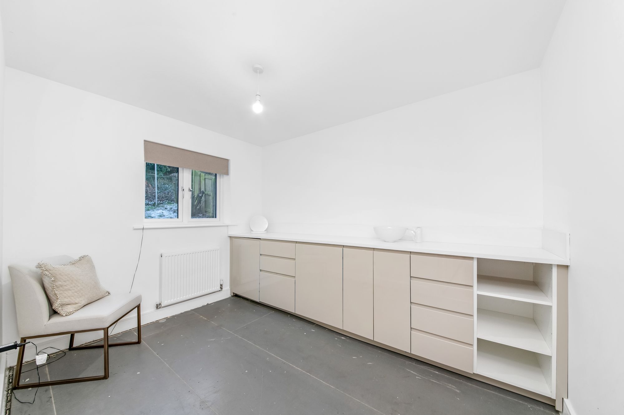 Bedroom three is situated to the front of the property and can accommodate a double bed with space for freestanding furniture. The room has been adapted for use as a studio and currently features a bank of double-glazed windows to the front elevation, a radiator, a ceiling light point, and fitted furniture which is available under separate negotiation. Please contact the office for further details.