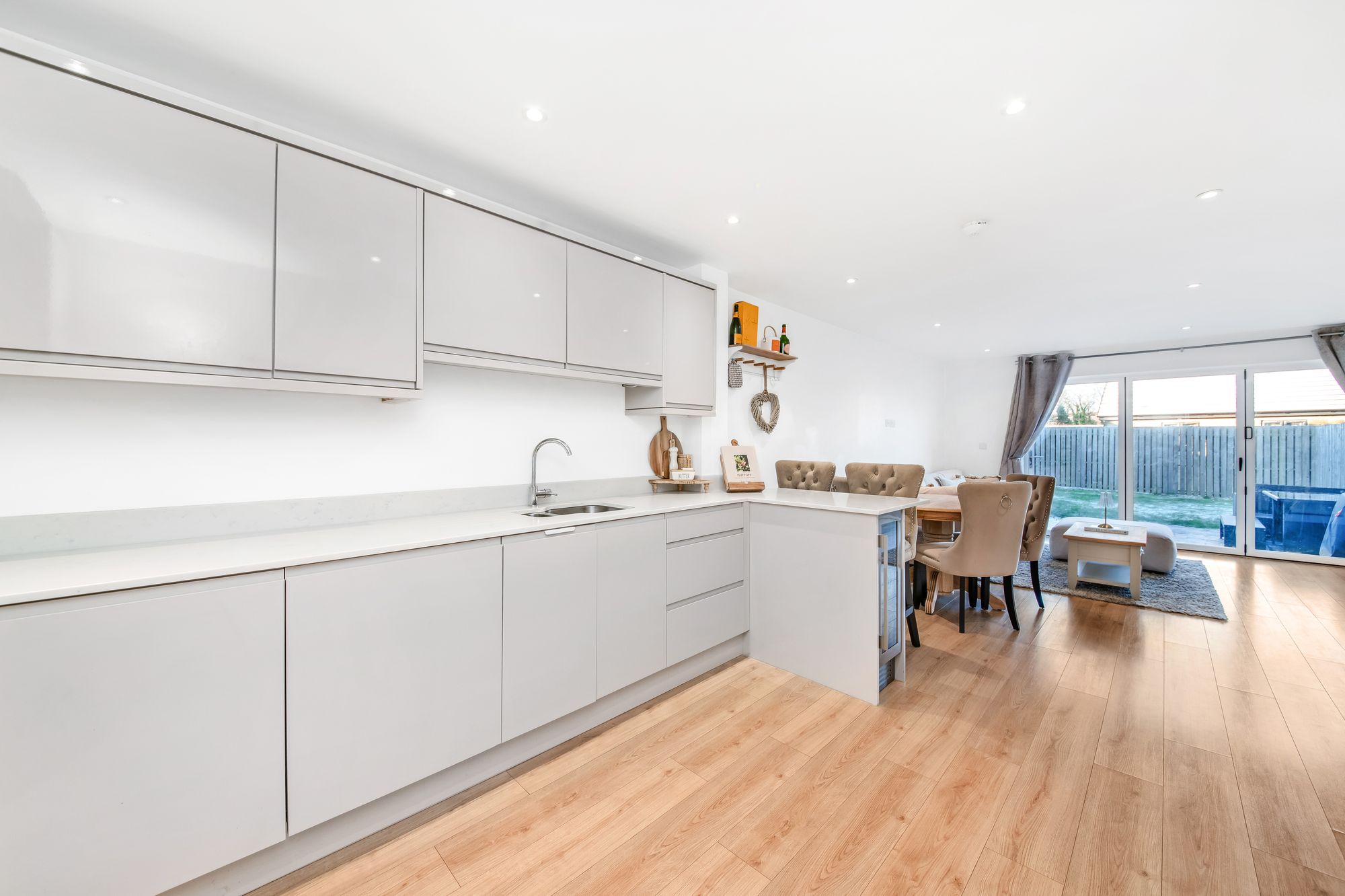 The property accommodation briefly comprises entrance hall, two double bedrooms and the house bathroom to the ground floor. To the lower ground floor is the open-plan dining kitchen and family room with bi-fold doors leading to gardens to the rear, and the utility room/WC. To the first floor is the principal suite with spacious double bedroom, part vaulted ceiling, en-suite bathroom and a multi-purpose room which is used as a dressing room. Externally, there is parking for multiple vehicles available to the front, and to the rear is an enclosed garden with flagged patio area and lawn.