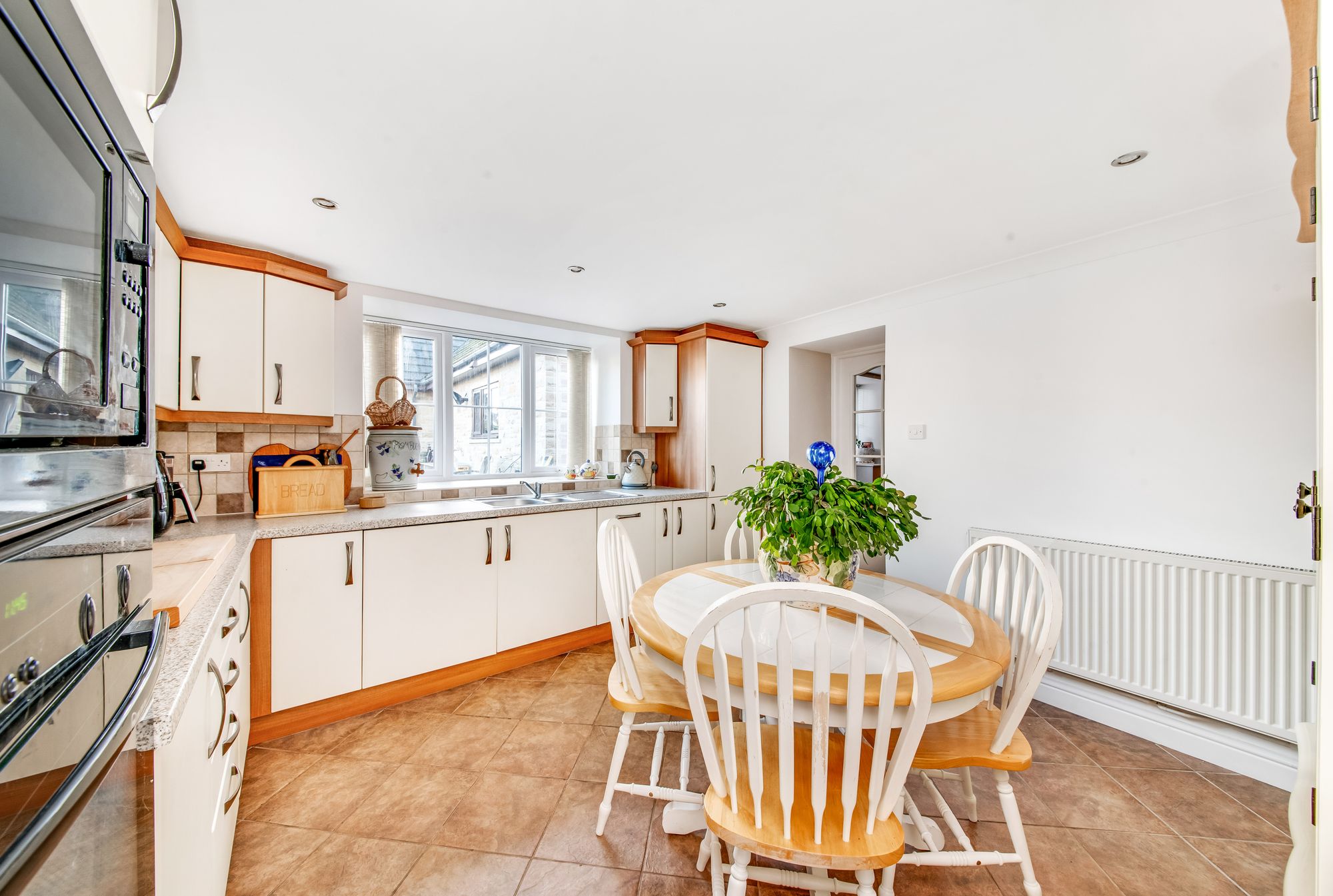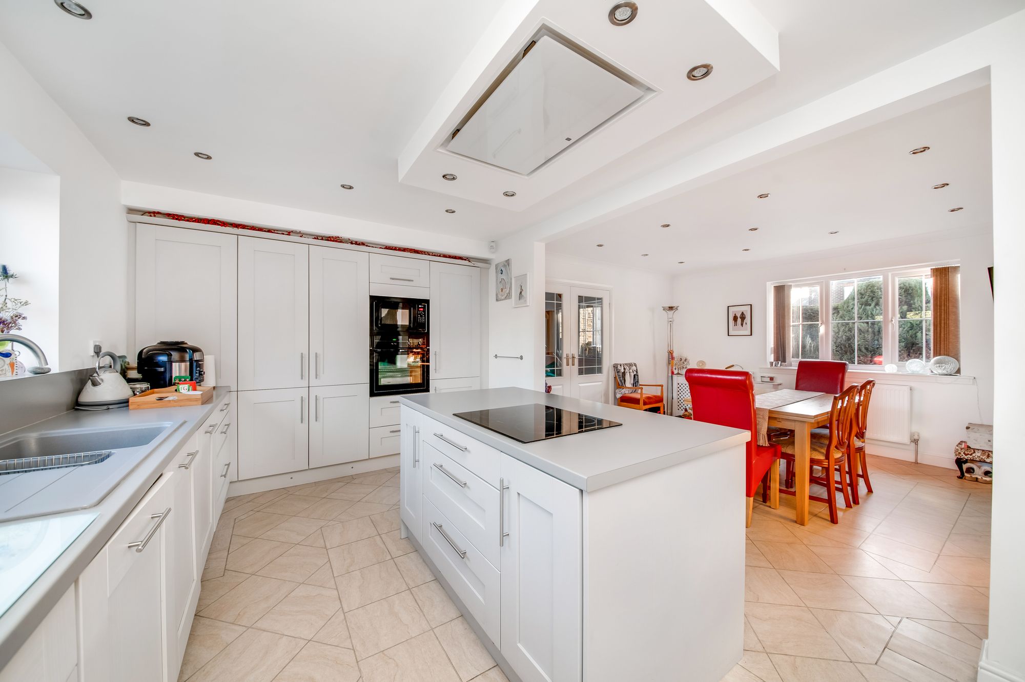 DINING KITCHENA well-proportioned dining kitchen having a range of wall and base units with contrasting laminate worktop, tiled splashbacks and solid tiled floor. Integrated appliances in the form of NEFF electric oven, microwave, NEFF four ring induction hob with extractor fan over. There is also an integrated fridge / freezer, dishwasher, washing machine and stainless-steel Franke sink with mixer tap over. There are inset ceiling spotlights, further under cupboard lighting, central heating radiator and a door giving access to the garage.