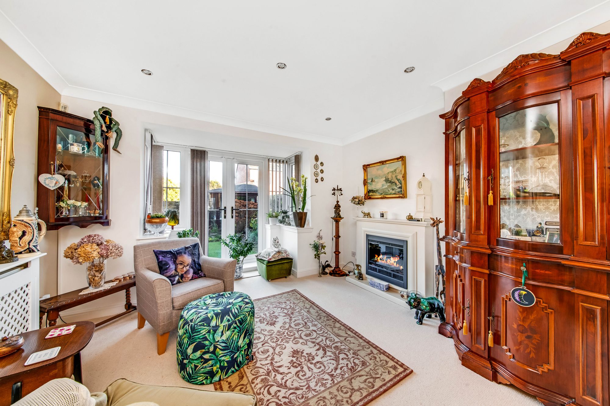 LIVING ROOMA spacious reception room with three wall mounted lights, coving to the ceiling, two central heating radiators, and uPVC double glazed windows to the side of the property. The main focal point of the room being a wooden surround with marble hearth.