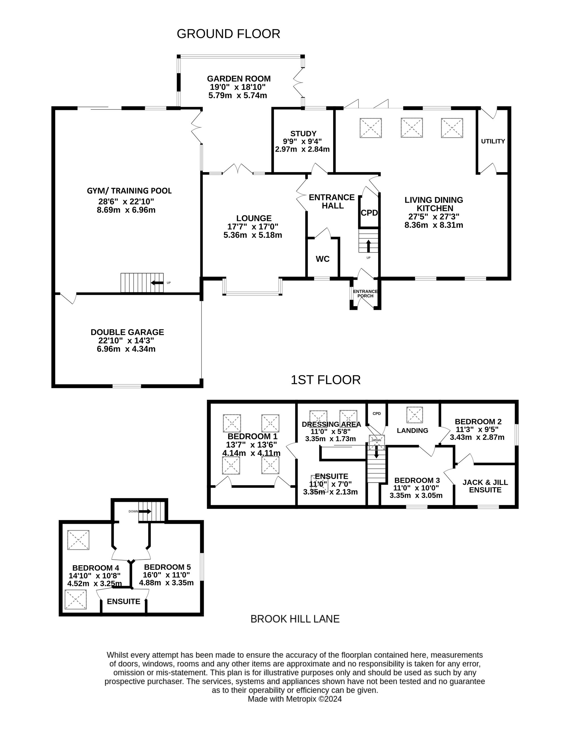 GYM/TRAINING ROOMTwin French doors in timber and glazing with double glazed windows alongside lead through to swimming pool. A superb addition to any home with fabulous leisure space with heated pool, under a pitched roof with an air source heating pump and a Fast Lane counter current machine. There is ceiling light, wall lights, part tiling to walls and tiled floor and there is natural light gained via two windows to the rear. Personal door gives access through to the double garage and stairs rise to first floor reaching bedrooms four and five.