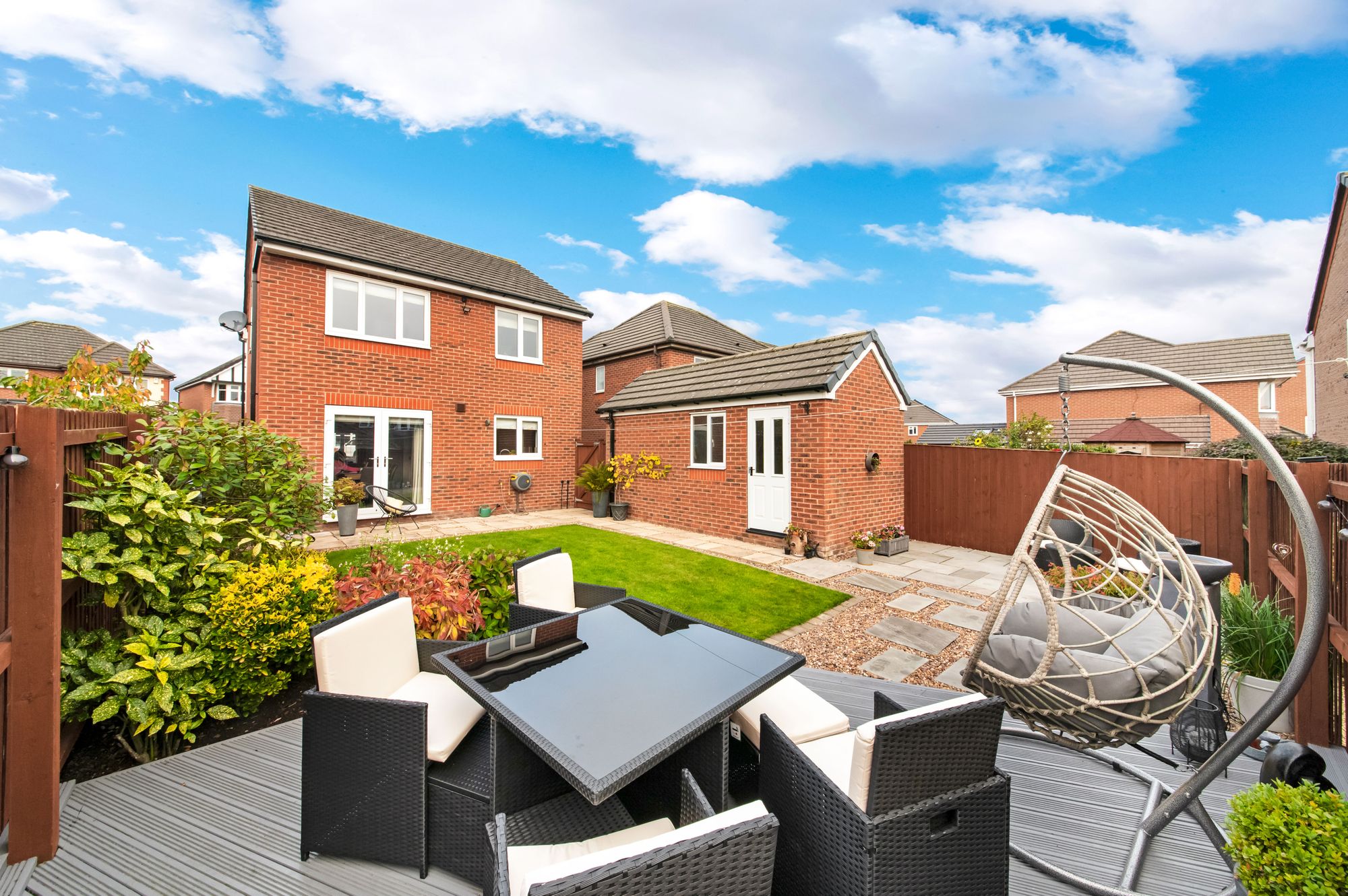 The property accommodation briefly comprises entrance hall, downstairs WC, lounge, kitchen and formal dining room to the ground floor. To the first floor, there are currently three double bedrooms, one with en-suite facilities, and the house bathroom. Externally to the front is a substantial driveway providing off-street parking for multiple vehicles, and to the rear of the property is a a low maintenance and enclosed garden which features a flagged patio area, lawn and raised decked area.