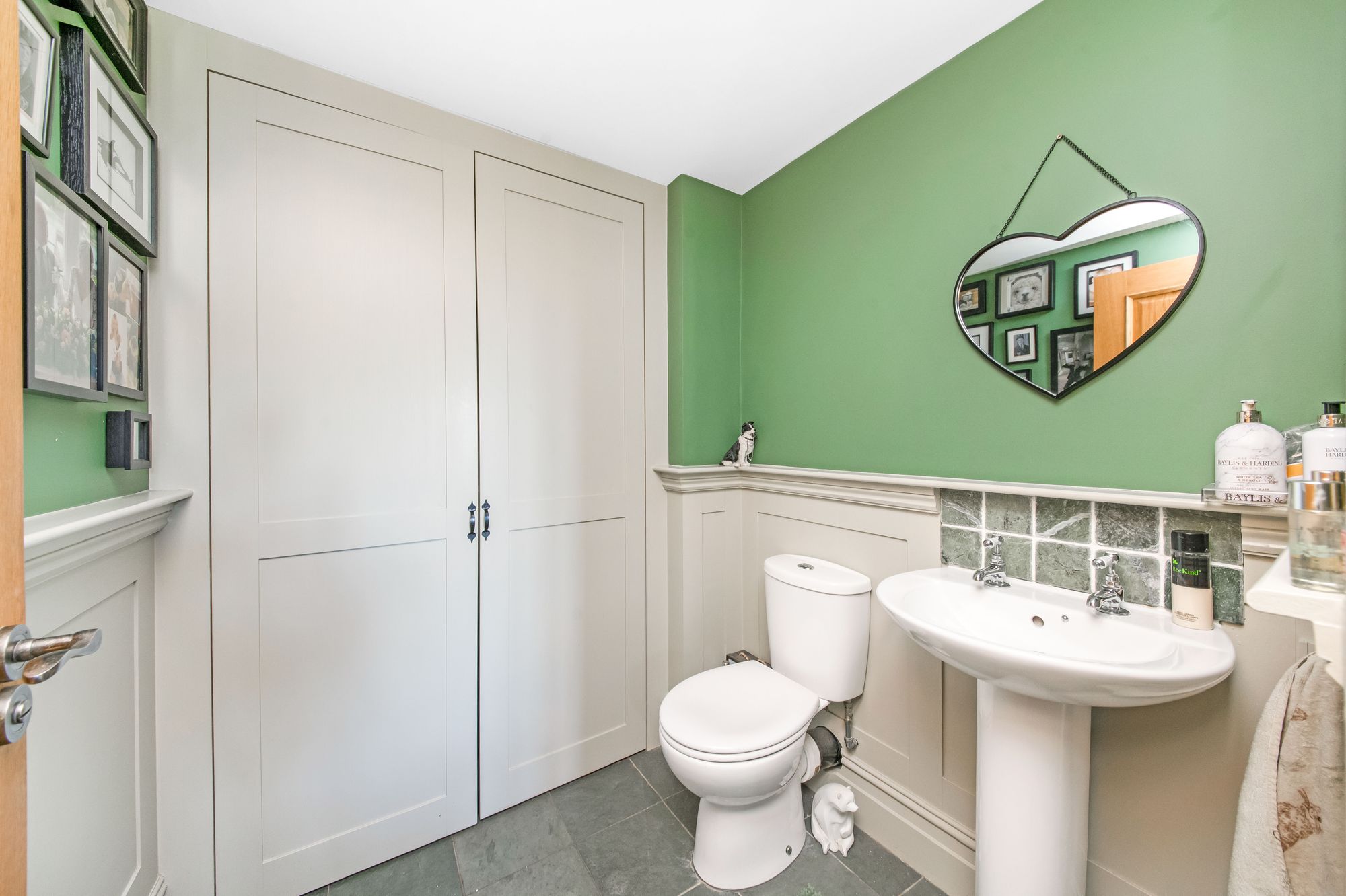 DOWNSTAIRS W.COnce again, with cloaks cupboards, ceramic tiled flooring, dado panelling to the half-height, low level W.C, pedestal wash hand basin and inset spotlighting to the ceiling.