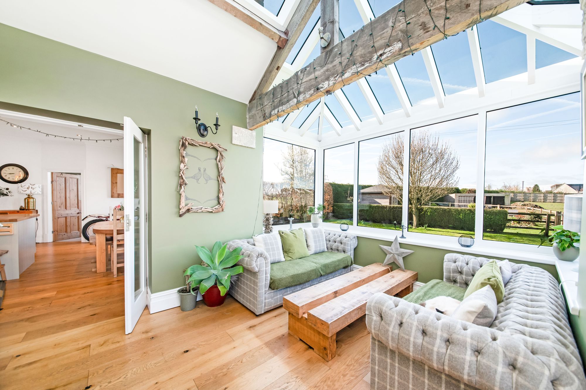 GARDEN ROOMThis has glazing which enjoys a stunning view out over the gardens, paddock and beyond. There is a huge amount of glazing up to the roofline, twin glazed doors giving everyday access out to the driveway, gardens, workshop and beyond. The room has a continuation of the oak flooring and has particularly useful storage cupboards. A four panel timber door leads through to the study/home office.