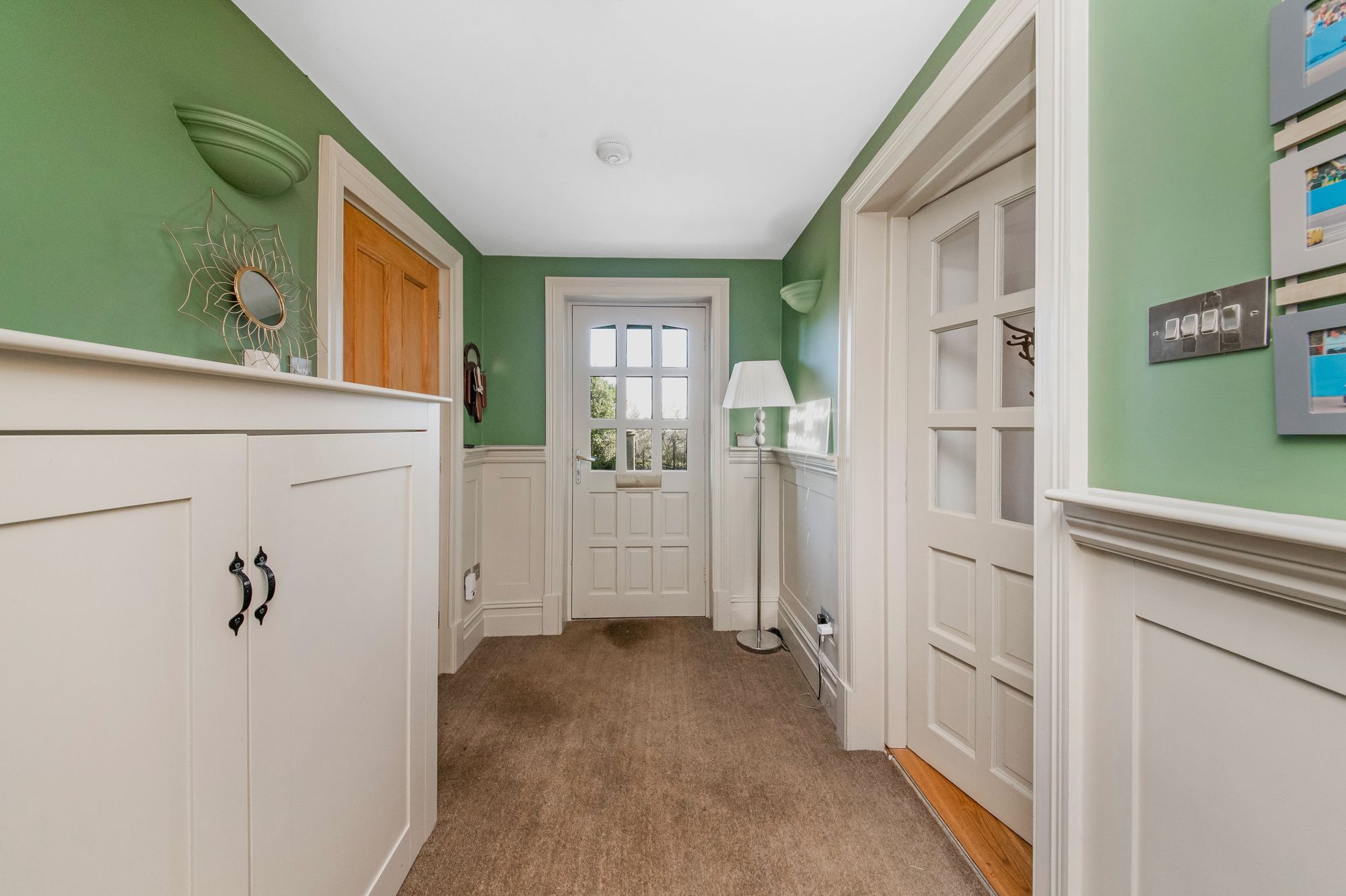 Timber and glazed door gives access through to the very large entrance lobby/hallway. This has storage cupboards, and a doorway leads through to the downstairs W.C.