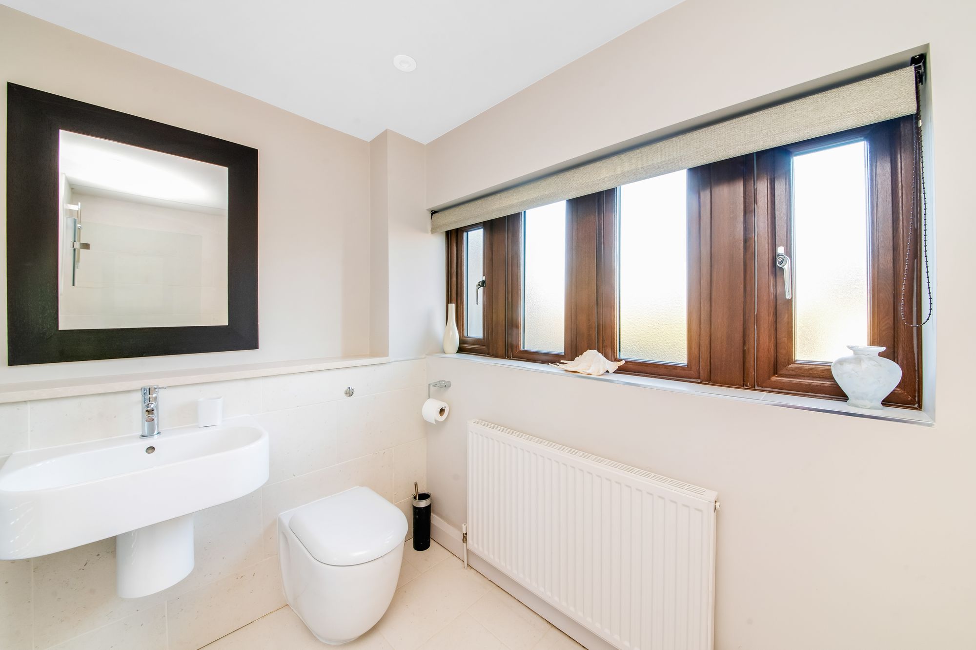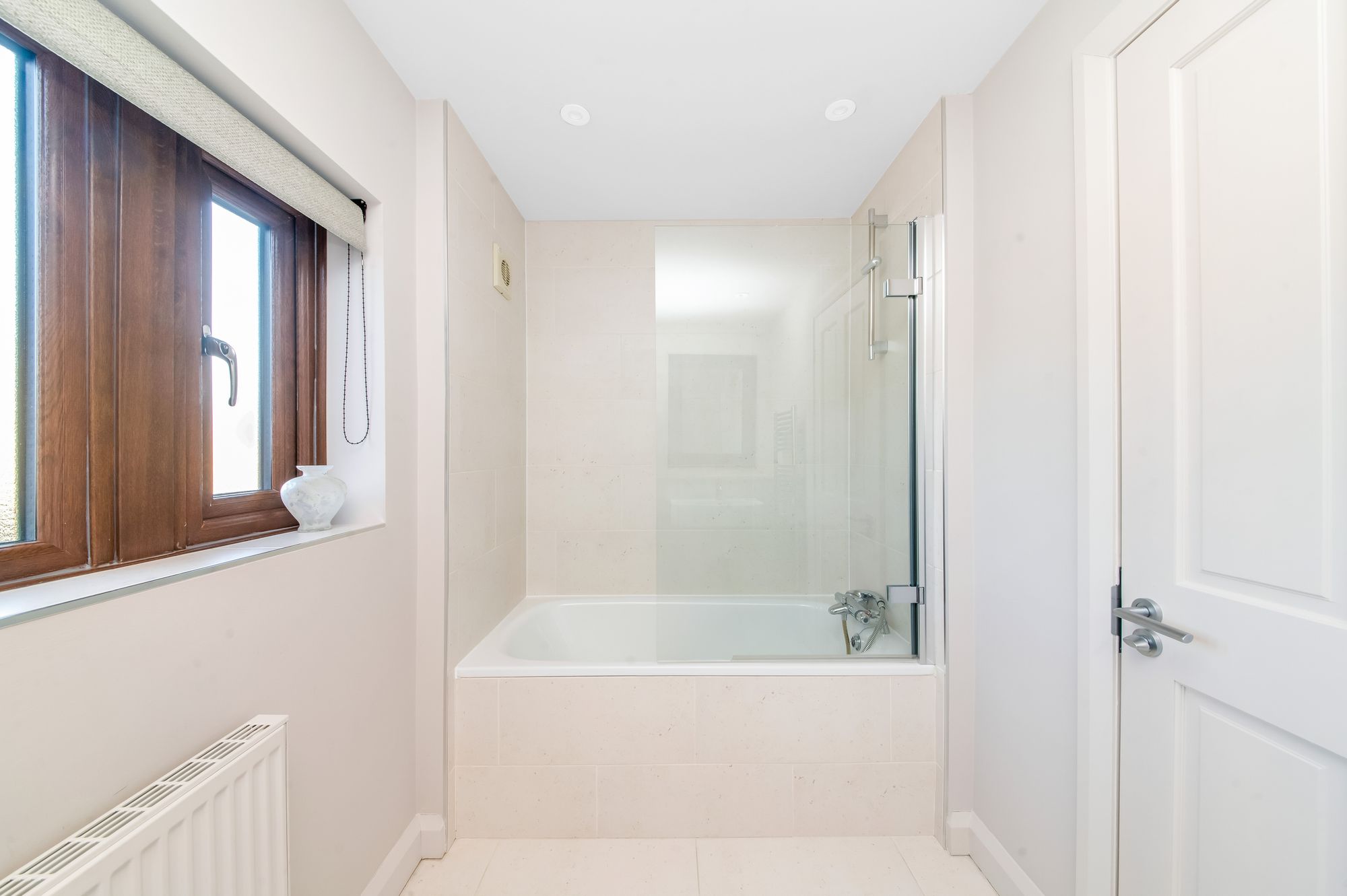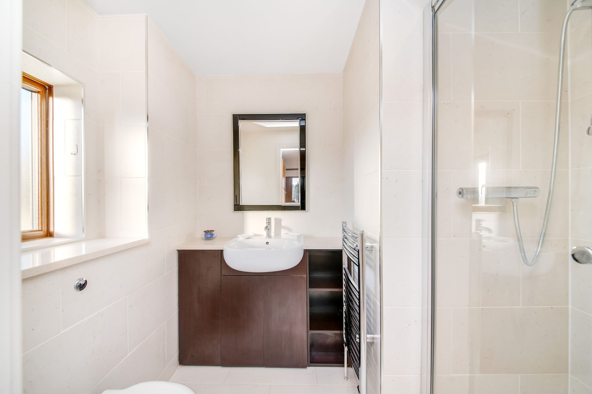 The property's bathroom is once again fitted superbly, it has a bank of mullioned windows, bath with Aqualisa chrome shower fittings and high quality glazed screen, inset spotlighting, extractor fan, wall mounted wash hand basin and concealed cistern WC and chrome central heating radiator in addition to the standard central heating radiator, ceramic tile flooring, ceramic tiling where appropriate to the full height around the bath stroke shower area, inset spotlight into the ceiling.