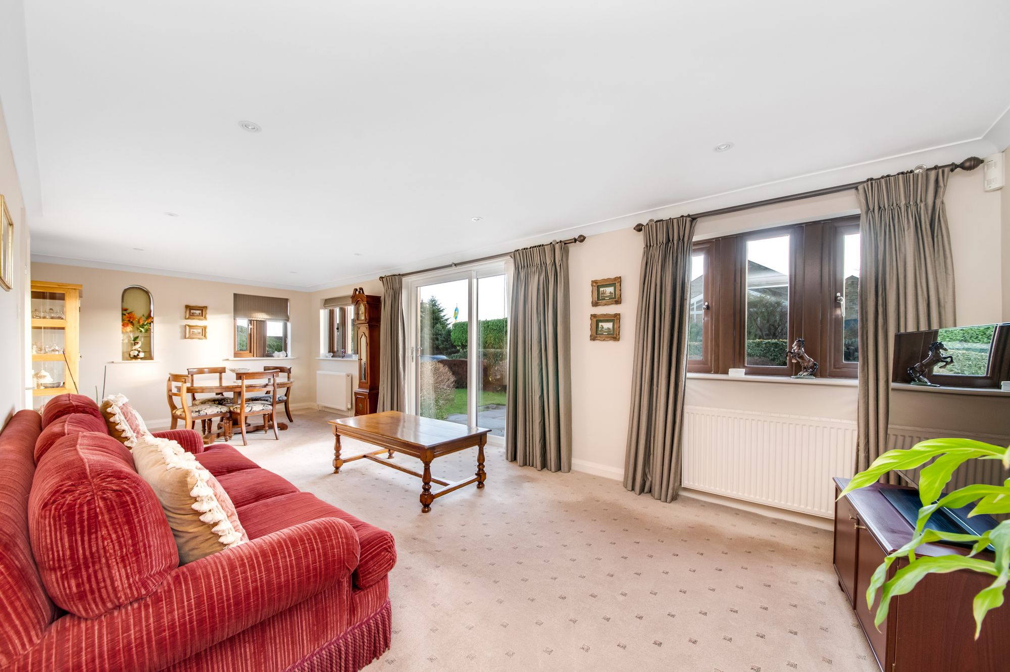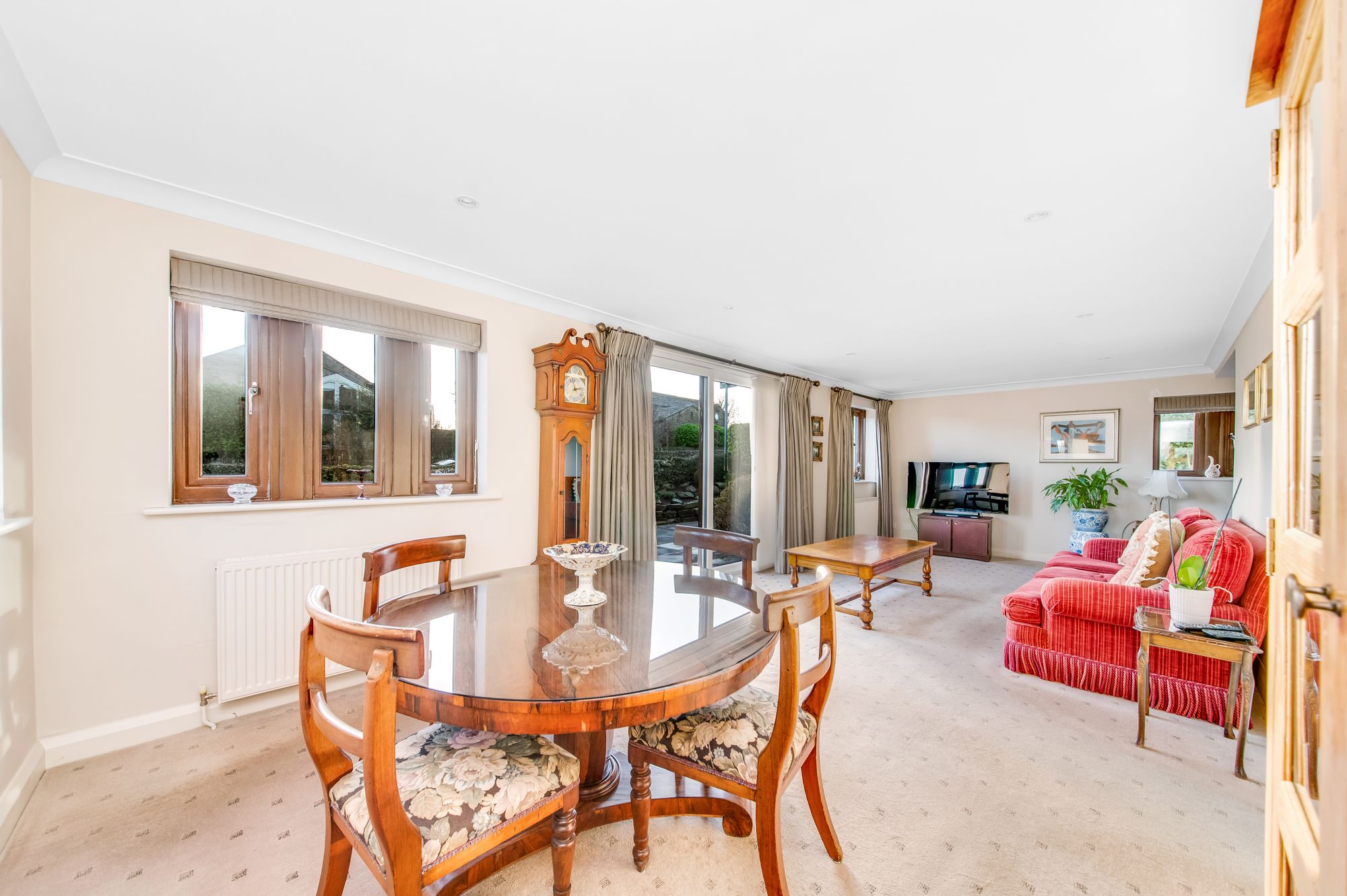 A four-panel timber door leads through to the fabulous living dining room. This very large room takes full advantage of the south-facing aspect overlooking the property's gardens and enjoying a large amount of natural light. This is courtesy of a variety of windows, approximately eleven, giving views out to three sides and also centrally located high specification, very broad patio doors that give a large amount of natural light and direct access out to the lovely gardens. The room is decorated tastefully, inset spotlight in the ceiling, coving and useful store cupboard. *Please note the dining area in the sitting room is due to the dining room of the principal home being used as the ground floor bedroom annex.