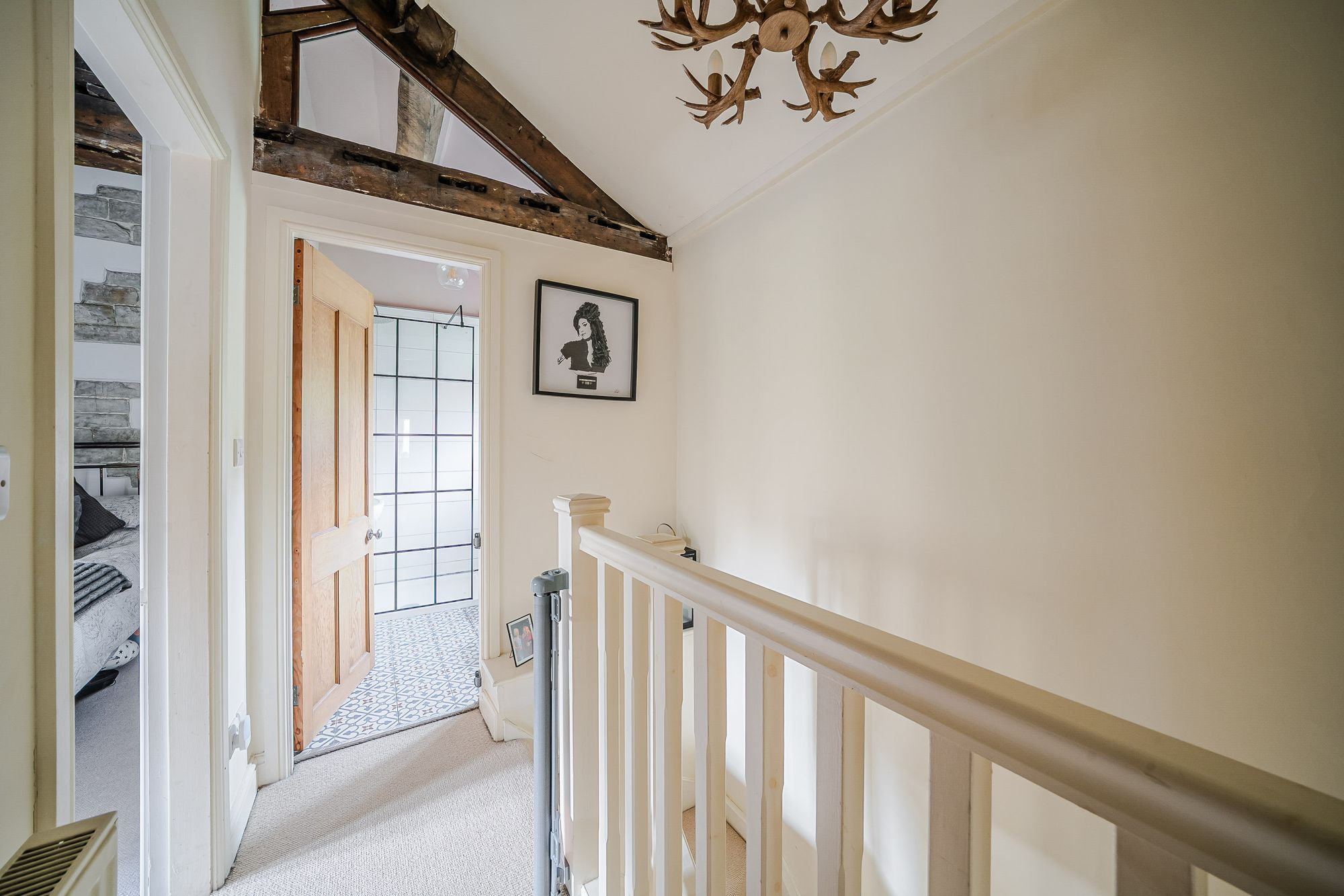 With a mono pitched beamed ceiling, ceiling light point, central heating radiator, and from the landing accessed can be gained to the following rooms: -