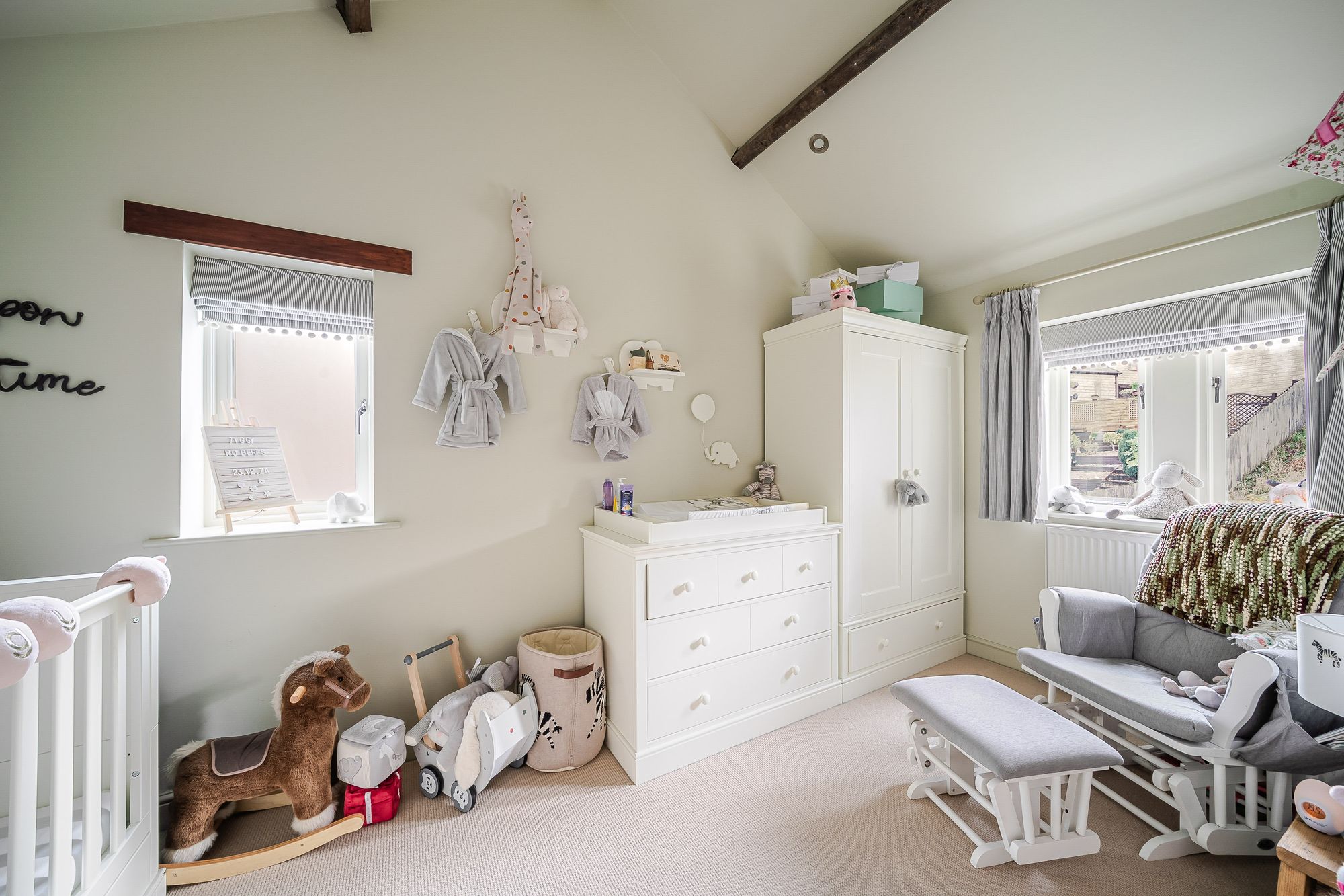 Another good-sized room which has mullioned timber and sealed unit double glazed windows to the front elevation and frosted timber and sealed unit double glazed window to the side, there is a pitched beamed ceiling with inset LED downlighters and central heating radiator.