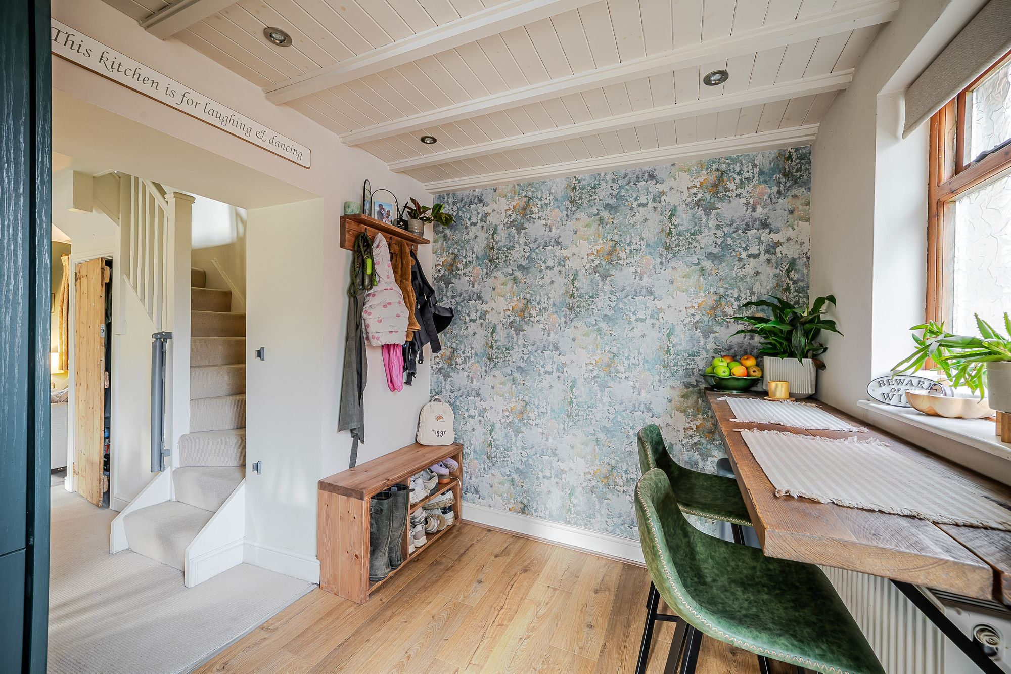 With a timber and frosted double glazed stable door, there are timber and sealed unit double glazed windows to the front and side elevation all of which provide the room with plenty of natural light.
